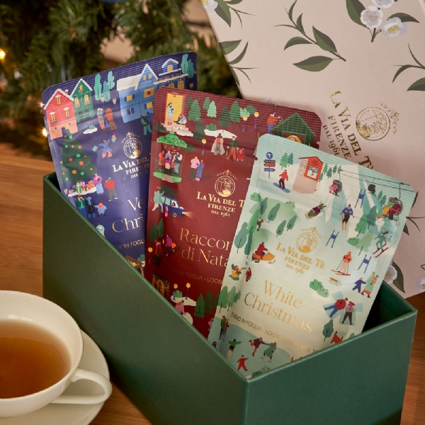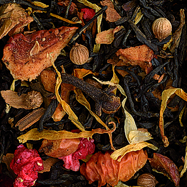 Racconto di Natale: Indian black tea, apple, cinnamon, cloves, flavours, coriander, strawberry, marigold petals.