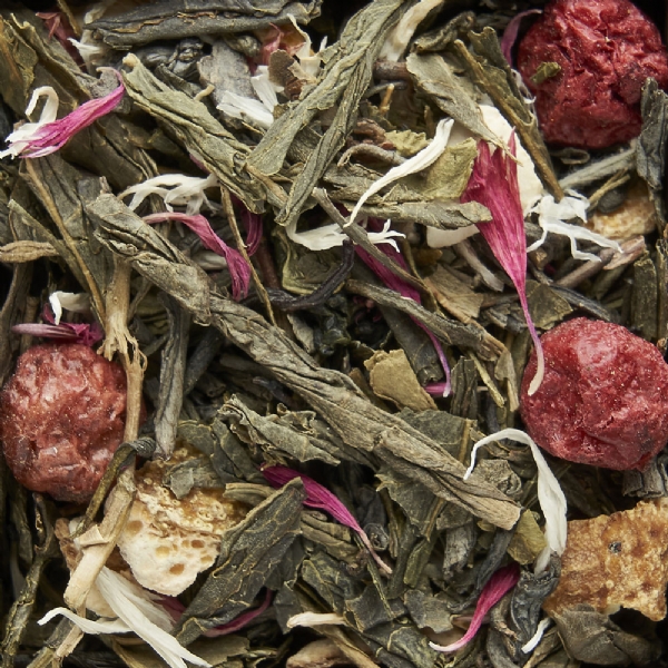 Green tea (China, Japan), orange peel, flavours, redcurrant berries, natural flavour, cornflower petals